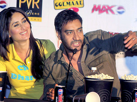 Bollywood superstars Ajay Devgn and Kareena Kapoor Khan who will be seen in Prakhash Jha's Satyagraha are all set to appear in Rohit Shetty's Singham 2 as well. After creating magic in Golmaal Returns and Golmaal 3 - the winning trio of Kareena Kapoor, Ajay Devgn and Rohit Shetty are ready to make a comeback with Singham 2. Buzz is that Kareena will be seen opposite Ajay in the flick. According to reports, Kareena Kapoor was approached by Rohit Shetty for the sequel as in Singham (2011) Kajal Agaewal was the lead actor with Ajay. Ajay Devgn and Kareena Kapoor had also shown their fabulous chemistry in Omkara (2006).